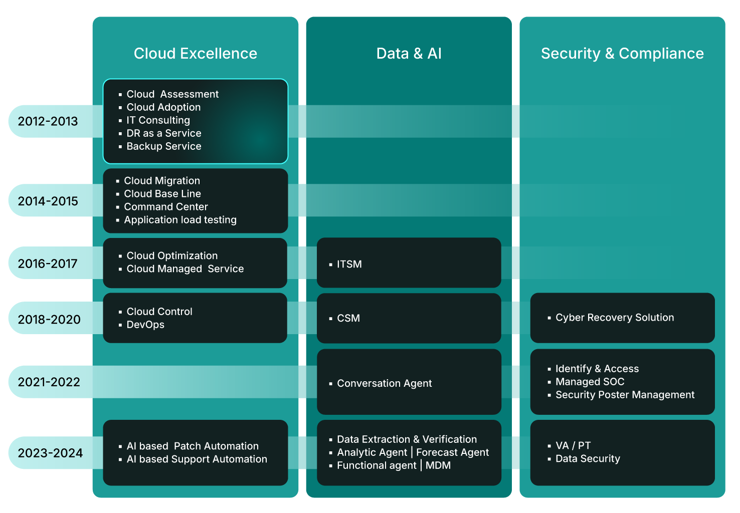 By modernizing IT infrastructure on the cloud, ensuring trusted and governed data, and applying AI-driven automation across business functions, we help enterprises build agile, future-ready operations that unlock innovation and accelerate growth.